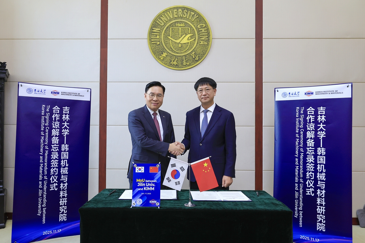 11月17日,吉林大学校长张希会见韩国机械与材料研究院院长柳硕铉,双方共同签署合作谅解备忘录。
